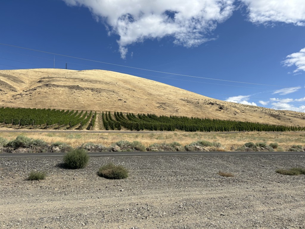 Longwinds Vineyard on Red Mountain. The site gets its name from its very long vine rows, and the persistent wind from the Yakima River. It was planted in 2014 and is the estate vineyard of Canvasback winery.