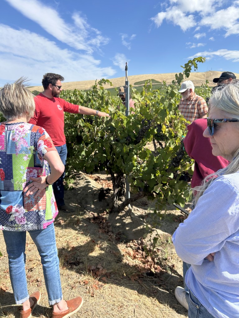 The group explored a few rows and picked some berries—the fruit was about “60% through veraison,” Czarny said.