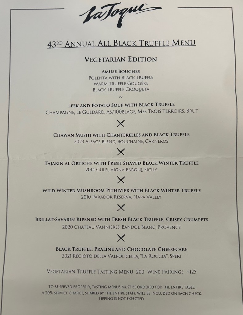 We cruised up to Napa in a rental Chevy Bolt, enjoyed mud baths and a relaxing day at Indian Springs in Calistoga, and took in a few truffle-themed experiences, part of the Napa Truffle Festival taking place during our visit. This included a return to La Toque for a truffle-loaded vegetarian tasting menu—an absolute steal compared to similar menus offered in the area. The days were sunny and in the 60s, a welcome change from Walla Walla’s recent cold snap.